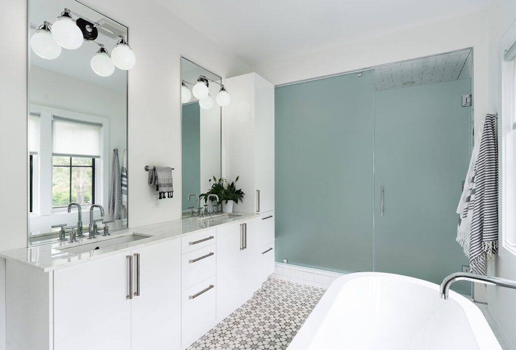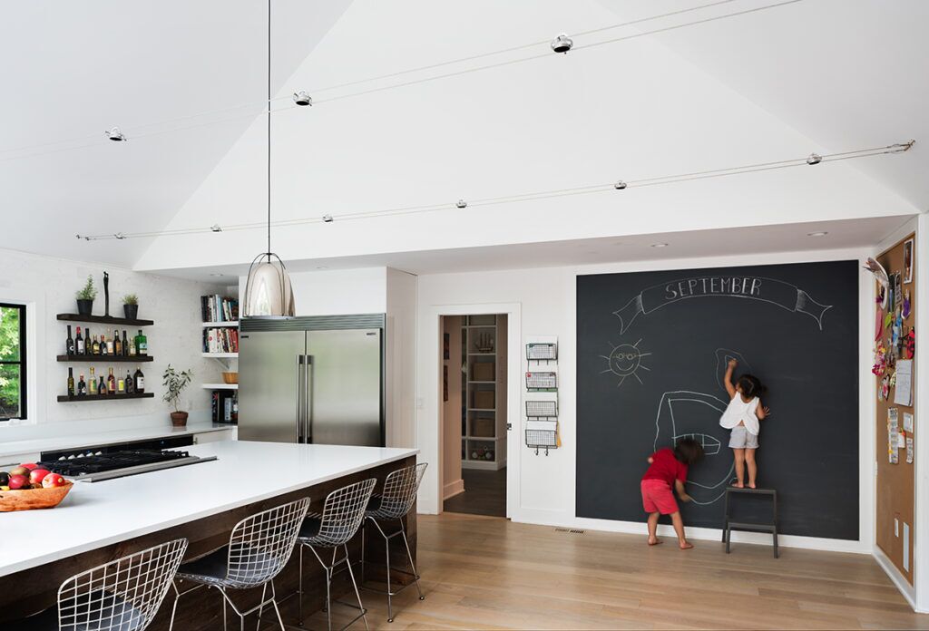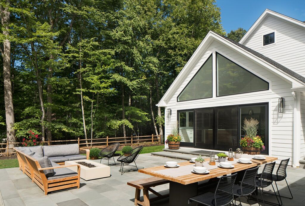 Renovation and addition to an existing 1-story house. An accumulation of poor additions in an unremarkable 1950s ranch were undone, along with a second floor addition, to create a cozy and uncluttered modern home to accommodate the lifestyle of a family that transitioned from an urban center to a suburban neighborhood. Enhanced access to nature through expanses of glass and covered entertaining spaces, along with airy and light living spaces, reinforced why they sought such a move in the first place.